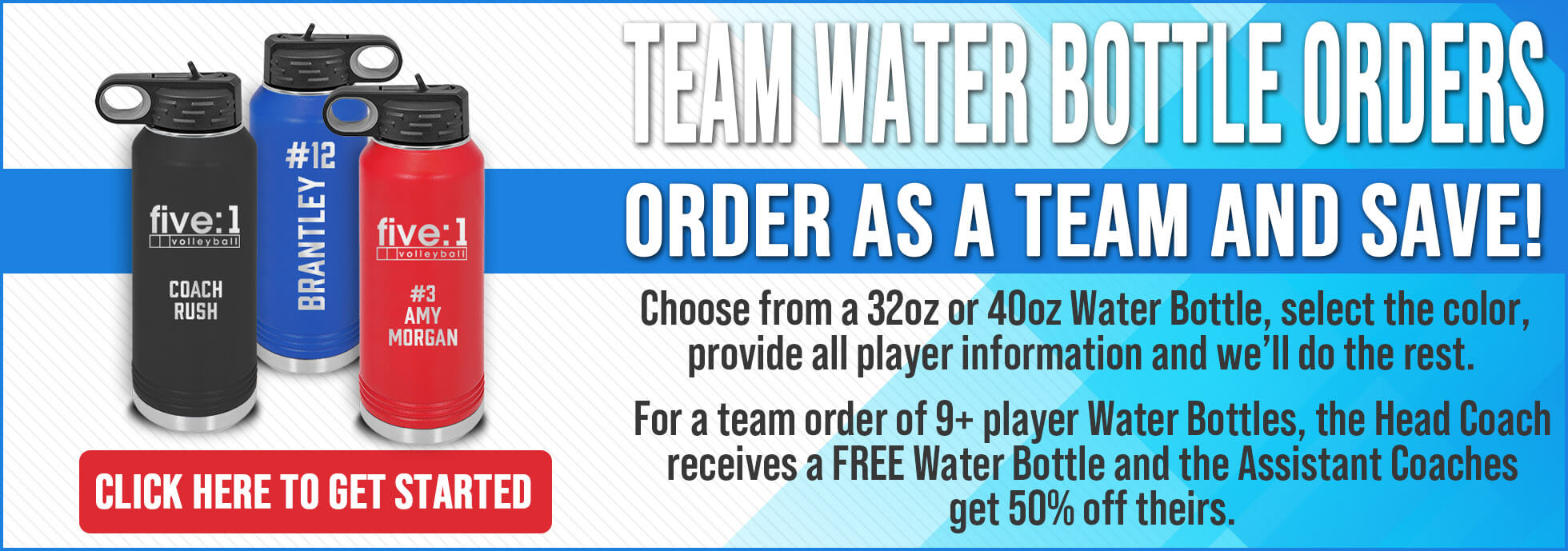 We have partnered with Five:1 Volleyball Club to offer these customizable water bottles and tumblers to you. Personalize them with your child’s name and number or get creative!