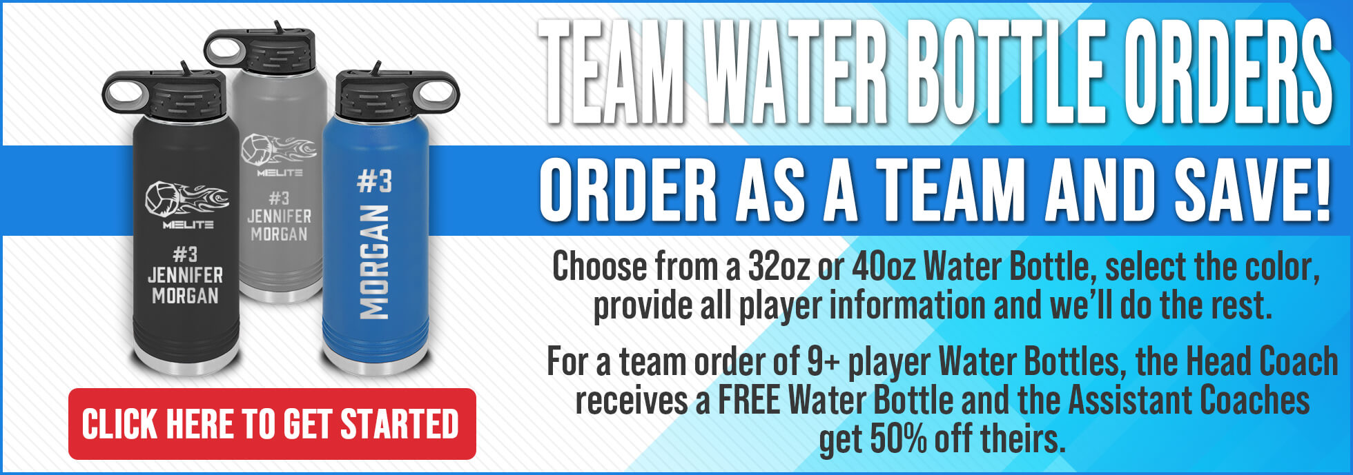 We have partnered with Michigan Elite to offer these customizable water bottles and tumblers to you. Personalize them with your child’s name and number or get creative!