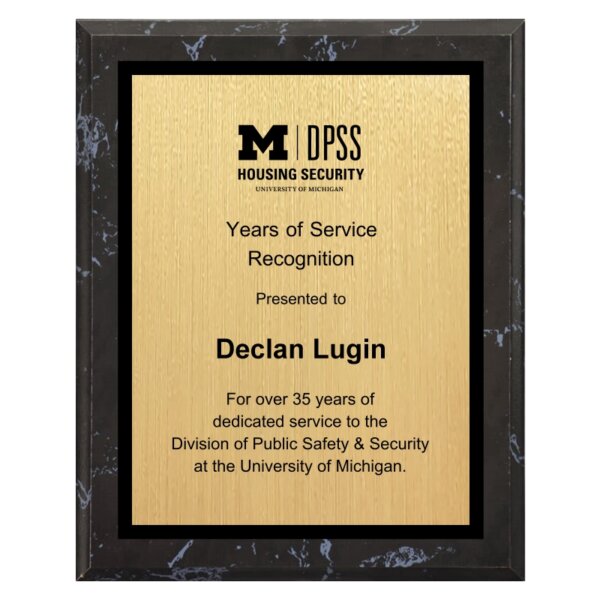 Black Marble Finish Plaque with Gold Sublimated Plate – BKM-GSUB