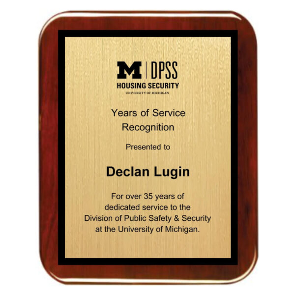 Rosewood Piano Round Corner Plaque with Gold Sublimated Plate – PNC-GSUB
