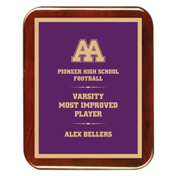 Rosewood Piano Round Corner Plaque with Purple and Gold Plate – PNC-PUG