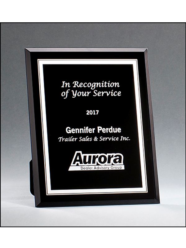 Black Glass Plaque with Silver Border – G2885