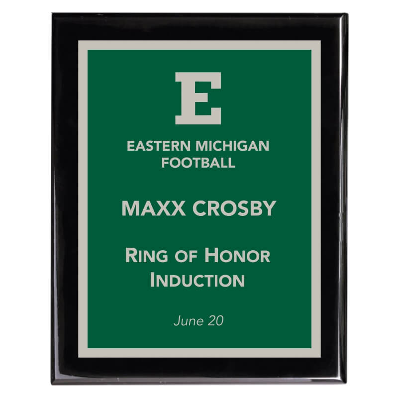 • Black Piano Finish Plaque with Green and Silver engraving plate and Silver border plate.