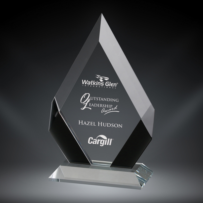 Clear Glass Award with Blue and Black Silk Screened Upright – G2657